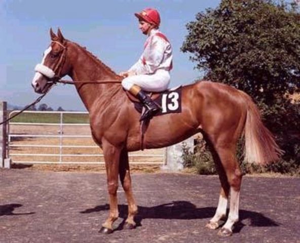 Энни Эдж (Annie Edge) 1980 к Английская верховая Рыжая Френдли Корт (Friendly Court) Би Френдли (Be Friendly)