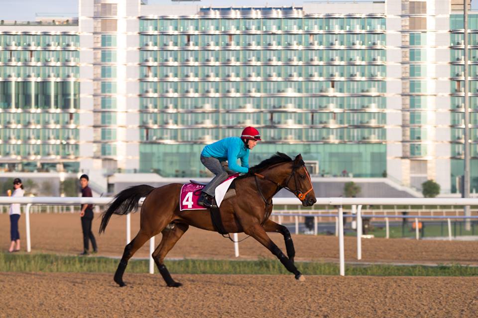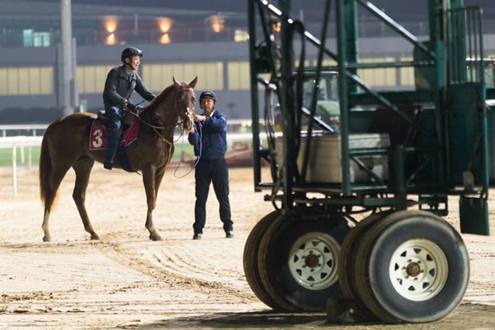 Четверг - изучал паддок и место седловки. Тренер Ясутоши Ики (Yasutoshi Ikee) : «Тренировка на большой трэке с малым количеством лошадей лучше для его физической кондиции, чем было дома. Сегодня мы гуляли по паддоку и месту седловки».
