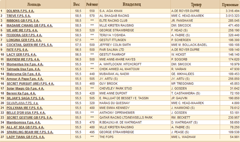 «Легкой прогулкой» для Treve эта скачка не будет однозначно. Стоить сказать хотя бы то, что вместе с ней возможно будет скакать звезда прошедшего Dubai World Cup 2015, кобыла DOLNIYA (Azamour – Daltama (Indian Ridge)), находящаяся в тренинге у Алана де Ройе-Дюпре (Alain de Royer-Dupre).