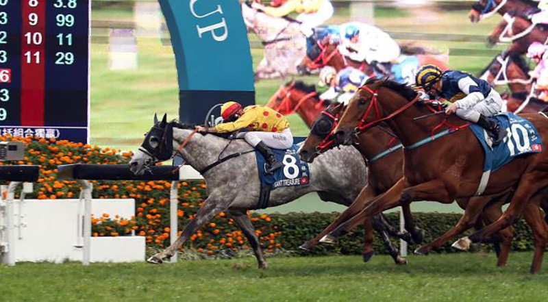 Победителем скачки Stewards' Cup стал мерин Giant Treasure (Mizzen Mast - Palisade (Gone West)) под седлом Кристофа Сумиллона (Christophe Soumillon). Этот триумф стал первым в карьере скакуна столь высокого уровня.