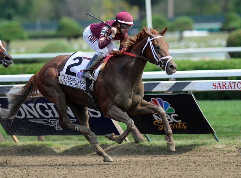 В завершившейся 29-го августа скачке Personal Ensign Stakes победила кобыла Sheer Drama (Burning Roma - Riveting Drama (Notebook)) под седлом Джо Браво (Joe Bravo). Со старта она заняла для себя удобную позицию (3-е место), и держалась недалеко от лидеров. Такая ситуация продержалась до выхода из последнего поворота. Далее Джо предпринял попытку «финишного рывка», увенчавшийся успехом. Дистанцию 1800 метров кобыла прошла в резвость 1.49,05. Тренирует победительницу – Девид Фокс (David Fawkes).