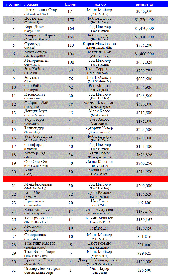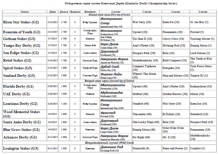 Лидеры квалификационной таблицы Кентукки Дерби 2015