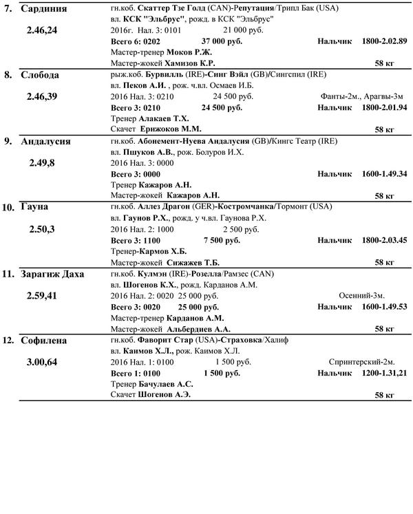 В захватывающей борьбе жеребец из конюшни шейха Мухаммеда бин Рашида Аль Мактума- Годольфин, под седлом Вильяма Бьюика, смог бросить Ве Гурка на полкорпуса. Третьим пришел к финишу Time Test (Dubawi-Passage Of Time (Dansili)), Роджера Чарлтона.