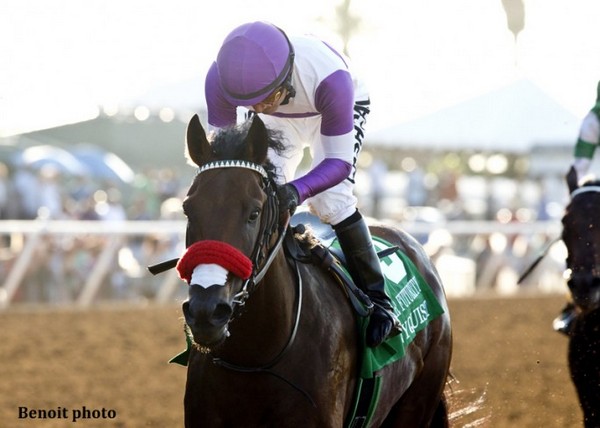 Принадлежащий Реддэм Рейсинг, трехлетний жеребец Nyquist (Uncle Mo-Seeking Gabrielle(Forestry)), выиграл в минувшую субботу, 2 апреля, скачку Флорида Дерби (Gr.1), с призовым фондом в 1 миллион американских долларов. Дистанцию 1818 метров на ипподроме Гольфстрим Парк (США), жеребец преодолел в резвость 1.49,11, став тем самым топ-фаворитом на Кентакки Дерби, которая пройдет 7 мая.
